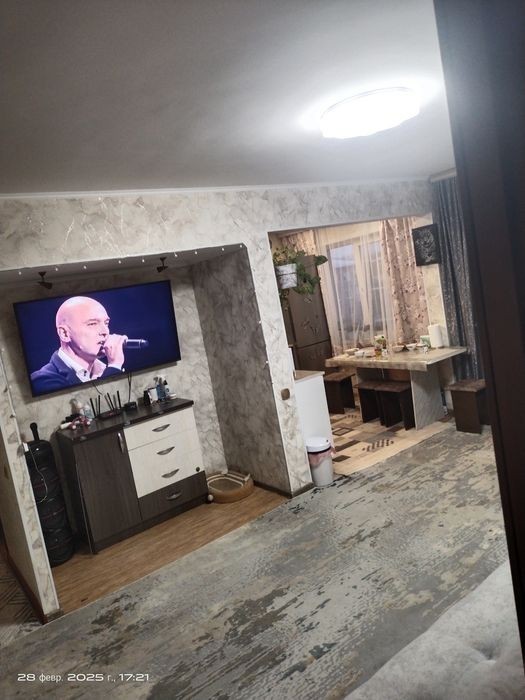 Продам 2х комнатную квартиру. Квартира находится в прекрасном районе, развитая инфраструктура, школы, садики, рядом поликлиника, остановка в трёх минутах ходьбы. Квартира находится на 5 этаже, с крышей проблем нет. Состояние отличное, в квартире остается полностью все мебель, бытовая техника всё в не давно куплено. Подъезд тихий, соседи 70% пенсионеры. Окна пластик, болкон остеклен пластиком. Новые батареи, сантехника отличная. Состояние заходи и живи, не чего делать не нужно. Район 45 аптеке.