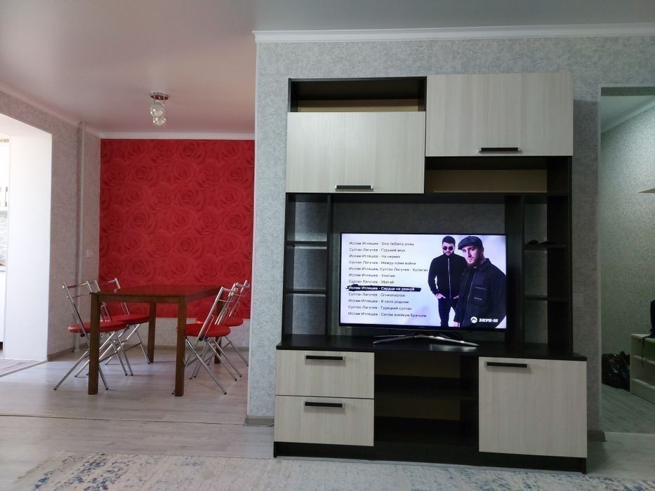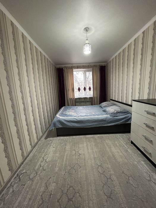 В самом центре города Шымкент, сдается 2 ком квартира. Удобная транспортная развязка, доступ в любую точку города. Рядом расположены: * Шымкент Плаза *Арбат *Киял алемi *Абай парк *Аквопрак *Жастар алея *Кино театр *Цирк *Стодион Кажмукахана *Универы В квартире имеется все необходимое для уютного и комфортного проживания: -Смарт тв -Интернет -Вся бытовая техника -Утюг -Чистое постельное белье и полотенца Уборка после каждого клиента Звоните будем рады звонку Работаем 24/7 Сутка 15000 Ноч 12000