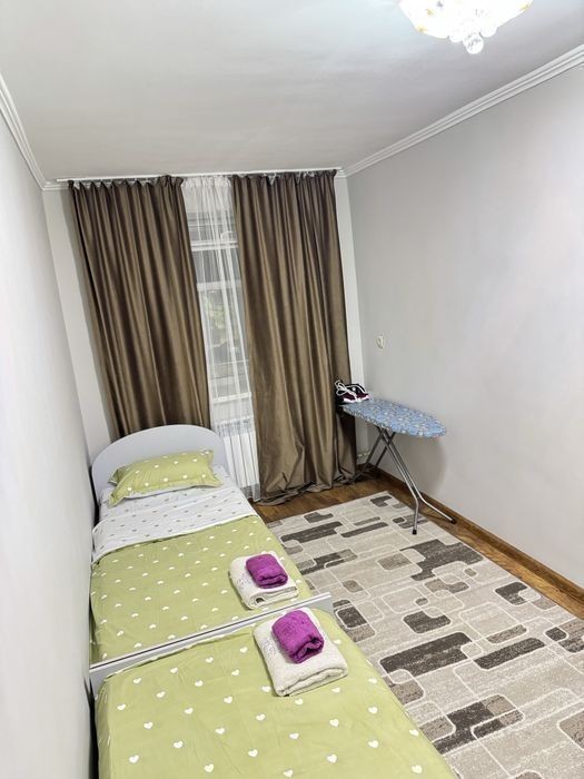 2комЛюкс в центре район Таргу, клиники Журек напротив парк Рыскулбекова, 2спальная кровать и 2раздельные кровати. Сутки 20000 до 12дня, по часам 1час 3500 мин 2часа. Страховой возвратный депозит 10000.
