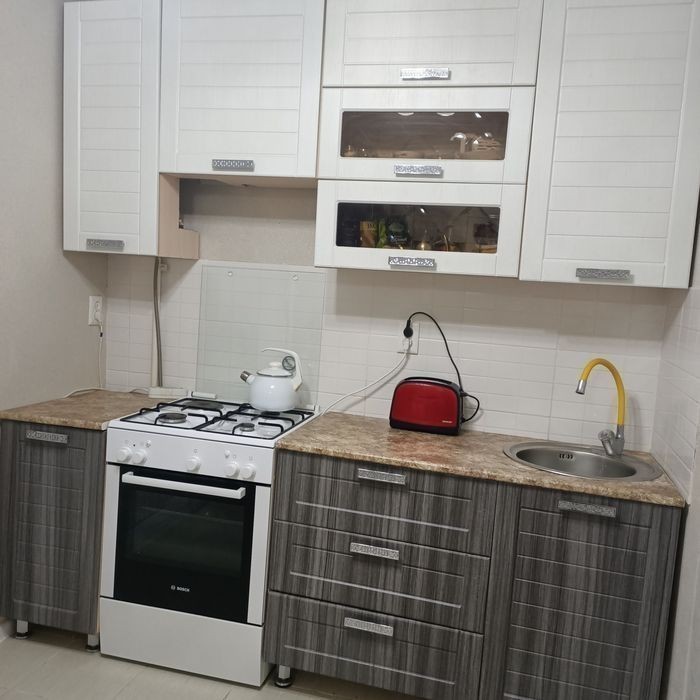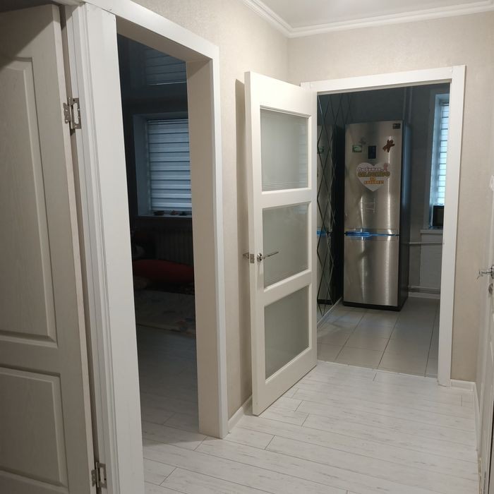 Продам 1комн. кв., мкр. Жана Орда. 5этаж из 6. Перепланировка в 2комн. (документы в порядке). Не угловая, кв. на солнечной стороне, витражный балкон. Частично с мебелью. Большой двор, дет. площадка, парковка, шлагбаум, своё ОСИ, дружные соседи. В торце дома 5 поликлиника, напротив 2 дет. сада и каз. школа. Реальному покупателю уступлю.