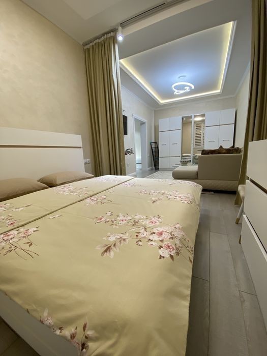 1-комнатная квартира в ЖК Royal Apartments | Центр города | Новый ремонт Сдаётся уютная, просторная квартира в элитном жилом комплексе Royal Apartments в самом центре Шымкента. Квартира светлая, чистая, полностью меблирована и укомплектована всей необходимой бытовой техникой. Адрес: пр. Кунаева, 79 Площадь: 50 м² Этаж: 6 из 12 Цена: 17 000 ₸ / сутки Минимум: от 2 суток Залог: 10 000 ₸ В квартире есть: - Кондиционер - Стиральная машина - Холодильник, плита, микроволновка - Smart‑TV, Wi‑Fi, ID‑TV - Посуда, постельное белье, полотенца О жилом комплексе: - Бассейн - Подземный паркинг - Бутиковая зона - Закрытая территория с охраной и видеонаблюдением - Детские и спортивные площадки Дополнительно: - Заселение при наличии документов - Курение запрещено - Заезд с 14:00, выезд до 12:00 - Для командировочных предоставляются отчётные документы