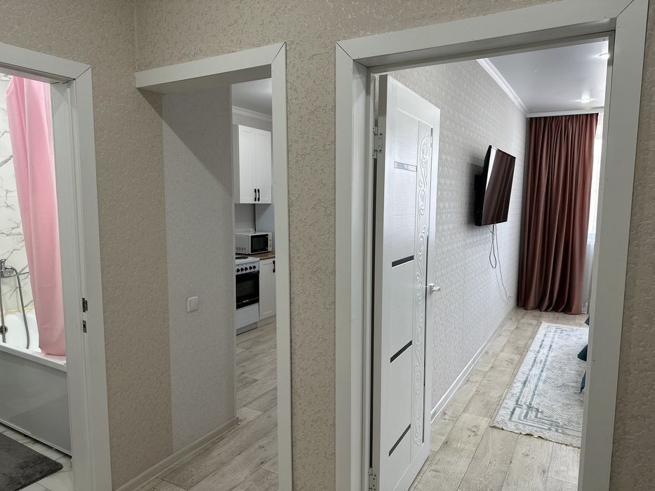 Уважаемые гости города и жители ! Добро пожаловать в нашу замечательную, уютную, чистую квартиру со свежим ремонтом ! В новом ЖК в центре города ! в квартире есть все необходимое для комфортного проживания : раскладной диван, двуспальная кровать со всей постельной принадлежностью, кухня со всеми оборудования для приготовления и вся посуда, гигиенические принадлежности : зубные щетки, паста, шампуни и тд. телевизор, SMART TV, гладильная доска, утюг и тд. ‼️ВНИМАНИЯ ! -квартира не сдается для шумных мероприятий -у нас не курят -у нас высокие стандартные уборки! Гарантируем чистоту и порядок. -имеется депозит возвратный -выходные и праздничные дни цены могут меняться. Звоните мы будем рады ответить на Ваши вопросы !