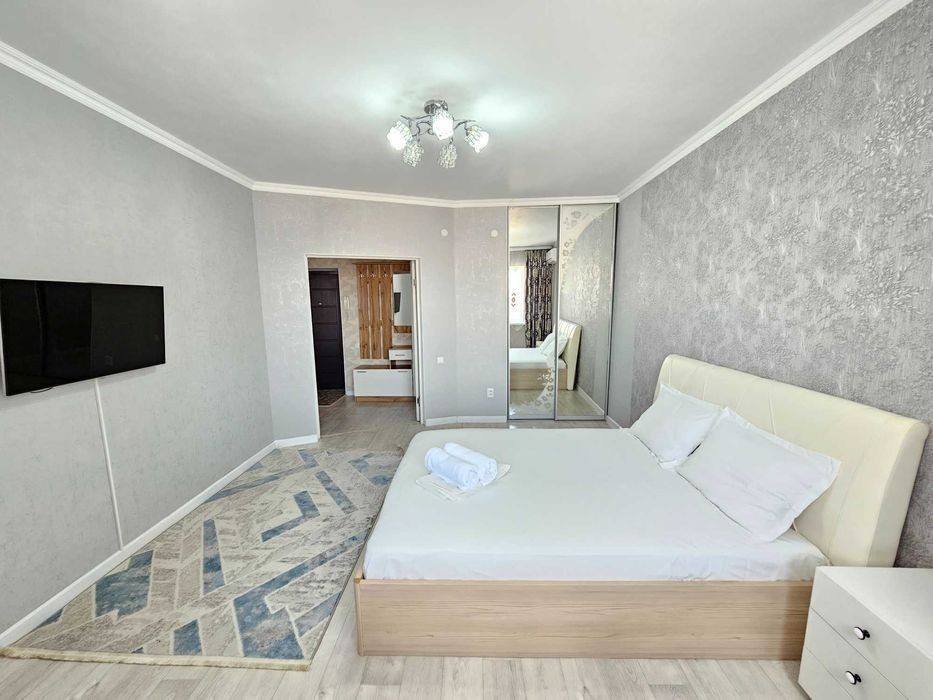 Апартаменты расположены в самом развивающимся районе города! Площадь апартаментов составляет 46 кв. м. и включает в себя комфортабельную спальню, полностью оборудованную кухню и современную ванную комнату. В апартаментах имеется все необходимое для комфортного проживания: Wi-Fi, кондиционер, телевизор, посуда, постельное белье и полотенца. Удобное месторасположение: рядом супермаркеты, кафе, рестораны, остановки общественного транспорта. До центральной площади города всего 10 минут ходьбы. В стоимость включены все коммунальные услуги и уборка перед заселением. Для бронирования и уточнения информации звоните по телефону +7 **********36 или пишите ватсап
