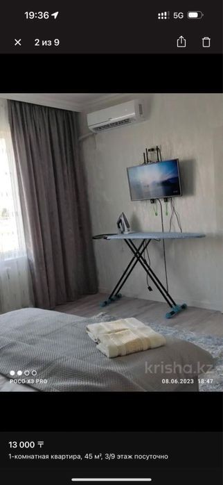 Квартира по суточно 1 ком мик Нурсат 1 -Wi-fi - Cmart TV - Лифт есть -Все в шаговой доступности Акимат, Дендропарк, Даймонт плаза, ОДБ, - Теплая квартира - Кондицонер -Свежое билье и полотенце Расчетное время 12:00 Дом ориентеровочно находится ул Байдибек би