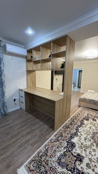 Дорогие гости сдам уютную однокомнатную квартиру посуточно от собственника. Площадь - 55 кв. метров. Этаж - 3. Квартира расположена в тихом районе Алтын Орда (Батыс-2). Есть все для комфортного проживания: кровать, шкаф и вешалки, рабочая зона для вашего ноутбука, телевизор Smart и Wi-Fi. Также есть полный кухонный гарнитур, холодильник, микроволновка, минимальный набор посуды. Ванная комната и туалет совмещенные, имеется стиральная машинка и электрическая сушилка. Из принадлежностей имеются халаты, тапочки, полотенца, шампуни гели для душа, мыло, зубная щетка с пастой всё как в гостинице. В квартире нельзя курить устраивать вечеринки и шумные посиделки. Новая квартира после дорогого ремонта. звоните или пишите 24/7 на связи.