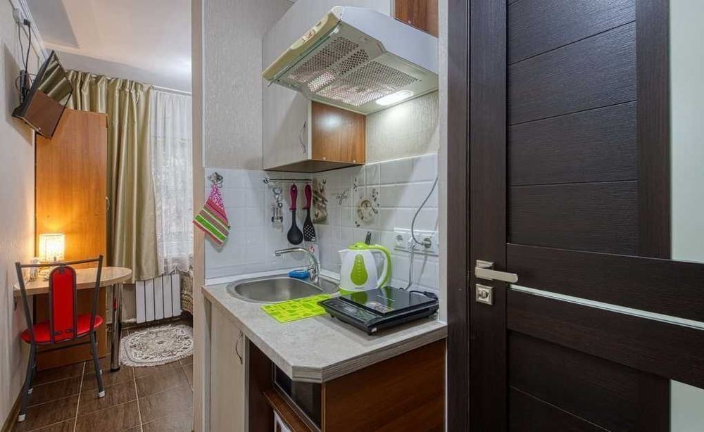 Круглосуточное заселение и поддержка от нашего Колл-Центра. Гости всегда могут рассчитывать на высокий сервис. Мини апарт-отель - это 4 уютные студии на первом этаже, каждая студия рассчитана для проживания двух человек. Студии имеют отличную звукоизоляцию и повышенную безопасность - двойную металлическую дверь и решетки на окнах. Наш формат студий рассчитан для комфортного проживания семейных пар, командировочных (готовим отчетные документы), гостей нашего города, а так же для тех, кто приехал на лечение. Студии оборудованы кухней и сан. узлом (душевая кабинка или ванная, белоснежный умывальник и унитаз), отличаются от полноценных квартир меньшей площадью от 15 до 18 кв. м. и поэтому сдаются по вкусной цене. Наши студии оснащены: -чистым, свежим постельным бельем и полотенцами -двухспальной кроватью с ортопедическим матрасом -быстрым, стабильным интернет по wi-fi и кабельным TV -гладильной доской, утюгом, феном, в кухонной зоне вы найдете всю -необходимую бытовую технику и посуду Экологически чистый район. Полностью развитая инфраструктура. В шаговой доступности детские сады, школы, Сатпаев университет, Алматинский университет энергетики и связи, казахский национальный университет Аль-Фараби, Дворец студентов, студенческая поликлиника, Ледовая арена Олимпик, Спортивно-культурный комплекс Б. Шолака, парк Мир Фантазий Алматы, казахский государственный цирк, Ботанический сад, АТАКЕНТ, театр им. Ауэзова, Центральный стадион, банки, масса маленьких магазинчиков и аптек, салонов красоты, кафе и ресторанов, крупных медицинских и торговых центров (MAGNUM, РАМСТОР и PROMENADE). Только посуточная аренда. Не сдается по часам и для мероприятий. У нас не курят и не шумят. С животными не размещаем! Расчетное время выезда 12:00, время заезда после 14:00