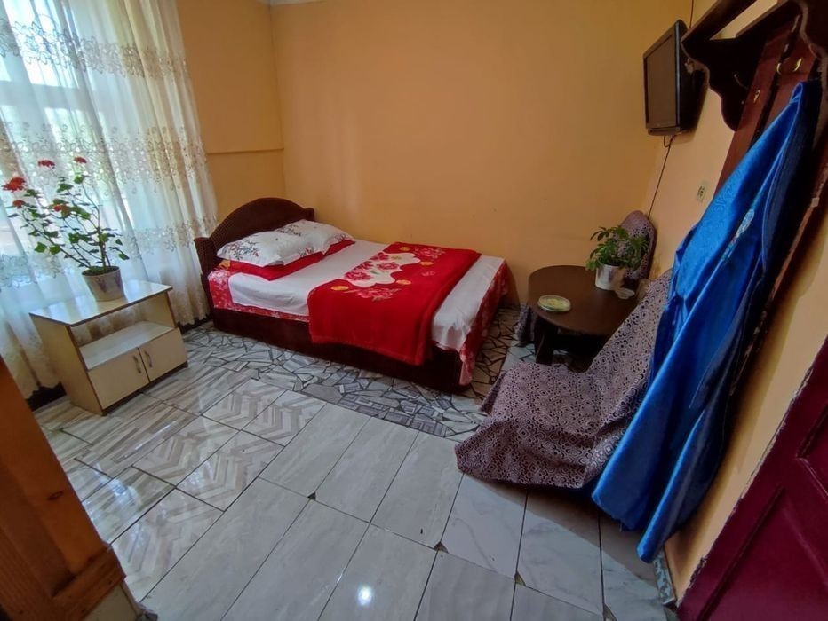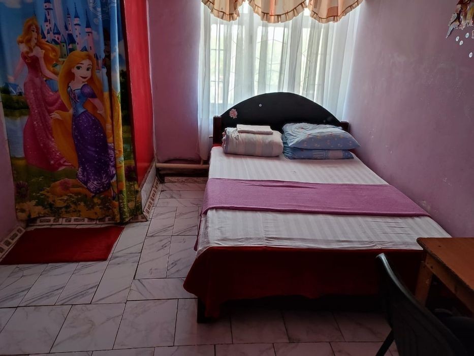 Удобное расположение от барахолки. Рядом есть остановка. Автобусы ездят с 5:30 до 23:00 ночи N129; - N125; - N35. До гостиницы Таншолпан остановка "труба". Тихий безопасный район в уединенном месте. Рядом есть минимаркет и кафе. В номерах имеется большая чистая кровать. Постельное белье постиранное выглаженное. Меняется после каждого клиента в обязательном порядке! На полу ковры и в каждой комнате есть телевизор. Wi-fi и парковка бесплатная! На улице есть камеры для вашей безопасности! Цена за сутки от 4000 до 7000 тг. Наш адрес: мкр. Карасу, ул. Куршим, 25. По карте 2Гис можете найти без проблем! Мы вас ждём! 87******093 *******4843