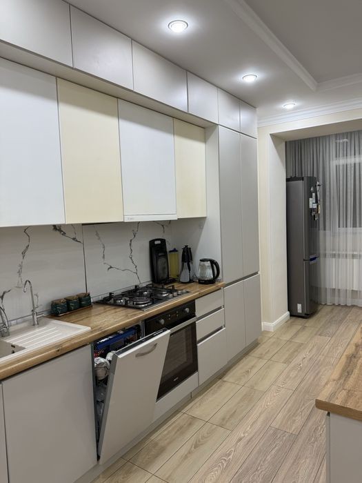 Продам 4-х ком кв переделанную на 3-х ком. Застройщик «Даулет Групп». Автономное отопление, зимой дома жара, квартира очень теплая. Окна смотрят на гл. улицу Халел Досмухамедулы и во двор. Покупали в черновом и делали ремонт для себя. Вся мебель и сантехника качественная. Двери, ламинат, кафель, керамогранит, электропровод все ставили хорошую. В кв два санузла, ванная и душевая. Инсталляция немецкой компаний GROHE. Есть место в подвале. Соседи очень хорошие, в подъезде всего 8 кв включая нас. Двор огромный на что и мы влюбились с первого взгляда. Застройщик добросовестный, нареканий нет вообще. Двор охраняемая, шлагбаум через пульт, званок или охрана открывает. В шаговой доступности школа Билим, Смарт Билим, школа Жайлы. Садики тоже все рядом. Супермаркеты как Анвар, Дина, Озон, валберрис, аптеки, развивающие центы все рядом. Тихи спальный район. Продаем в связи с переездом, торг имеется, но разумная. Кварира в залоге, при реальном покупателе можем решить, не проблема.