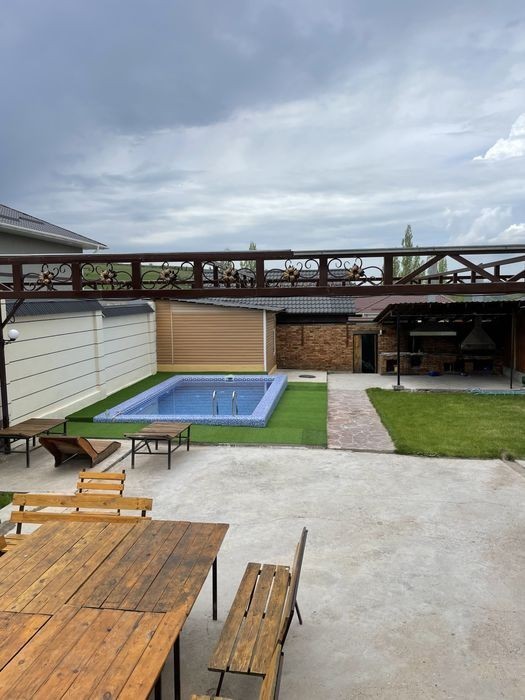 Сдаётся элитный коттедж 3х уровней коттедж в бургулюке Туда входит Бассейн с подогревом Билиярд Настольный теннис Баскетбольный сетка Баня и внутри холодный бассейн 3 спальный На 3 этим этаже находится 6 ординарный кровать с видом на горы Караоке профессиональный кухня со всеми принадлежностями, уютный барбекю, терраса на 20-25 человек с видом на горы, парковка, уютная баня, тапчаны. Заезд в коттедж по времени 14:00, выезд в 12:00, можно продлевать время заранее обговорив, задаток обязательно. Бронь по тел ЦЕНА может менятся от количество людей и в праздничные-выходные дни