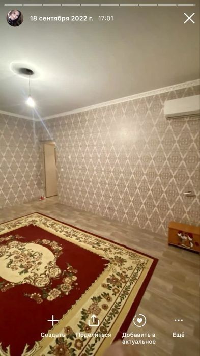 Аренда га бир болмели квартира бериледи, 9 мкр 24 дом астановка базарчик мектеп садик колледж бари жакын, Диана торговый домнын артындагы дом. 100 мын + ком услуг