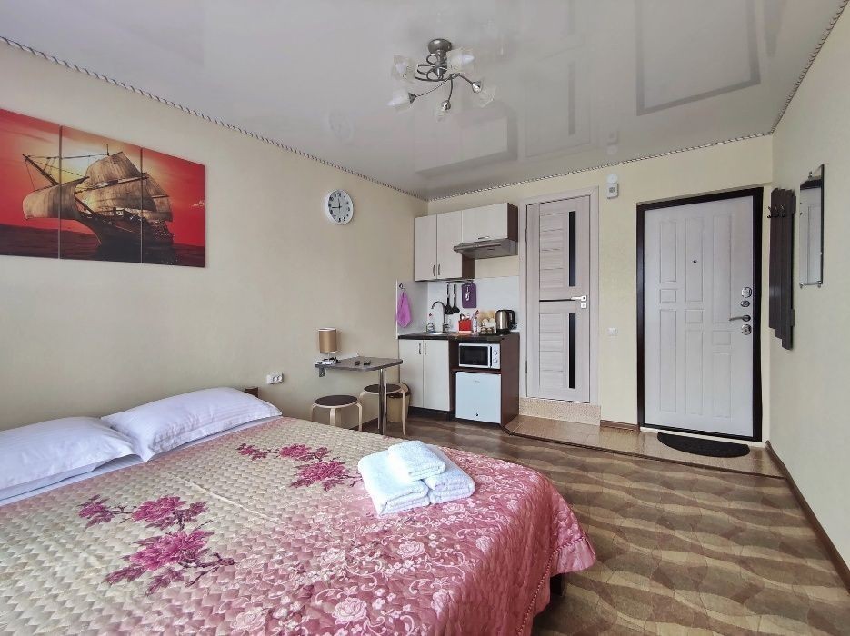 Круглосуточное заселение и поддержка от нашего Колл-Центра. Гости всегда могут рассчитывать на высокий сервис. Мини апарт-отель - это 4 уютные студии на первом этаже, каждая студия рассчитана для проживания двух человек. Студии имеют отличную звукоизоляцию и повышенную безопасность - двойную металлическую дверь и решетки на окнах. Наш формат студий рассчитан для комфортного проживания семейных пар, командировочных (готовим отчетные документы), гостей нашего города, а так же для тех, кто приехал на лечение. Студии оборудованы кухней и сан. узлом (душевая кабинка или ванная, белоснежный умывальник и унитаз), отличаются от полноценных квартир меньшей площадью от 15 до 18 кв. м. и поэтому сдаются по вкусной цене. Наши студии оснащены: - чистым, свежим постельным бельем и полотенцами - двухспальной кроватью с ортопедическим матрасом - быстрым, стабильным интернет по wi-fi и кабельным TV - гладильной доской, утюгом, феном и стиральной машинкой - в кухонной зоне вы найдете всю необходимую бытовую технику и посуду Экологически чистый район. Полностью развитая инфраструктура. В шаговой доступности: парк Первого Президента, торгово-развлекательный центр МЕГА, несколько оптово-розничных магазинов сети МАГНУМ, вещевой рынок Орбита, торговые бутики и фитнес-центры, ряд крупных медицинских центров и аптек, стоматологические клиники, высшие учебные заведения, бизнес-центры, рестораны и кафе, банки и финансовые организации, мечеть и церковь, а развитые транспортные развязки позволяет быстро и с комфортом добраться в любую часть города. Только посуточная аренда. Не сдается по часам и для мероприятий. У нас не курят и не шумят. С животными не размещаем! Расчетное время выезда 12:00, время заезда после 14:00. Наш сайт и инстаграм: 24home.kz