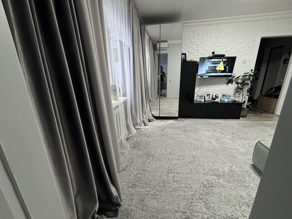 Продам квартиру с мебелью и техникой, вариант Заходи и живи, заберу личные вещи и некоторую посуду. В квартире останутся кровать, столы и стулья, телевизор, мягкая зона - диван, шкафы, шторы-тюли, жалюзи, диодные люстры, кухня и вся встроенная техника (посудомоечная машина Hansa, вытяжка, газовая духовка и газовая варочная поверхность, холодильник, микроволновая печь, кондиционер зима-лето) вся техника в рабочем состоянии и прослужит еще долго, всё чистое и обращалась аккуратно, фото ванной ( там ванна, не душевая кабина) и прихожей не поместились, могу отправить в ватсапе. Очень светлая квартира, в стиле минимализм, приятных цветовых гаммах, первое время можно обойтись без ремонта либо освежить стены и потолки ( красились моющей краской), в ванной натяжной потолок и итальянский кафель, входная дверь новая. Квартира - отличный вариант для небольшой семьи или молодой пары. Во дворе частный сад, в шаговой доступности 4 садика, 3 школы, поликлиника в 5 минутах езды, Магнум и Фермаг в 10 минутах пешком, внизу дома аптеки, минимаркеты, двор облагорожен детская площадка, футбольное поле, фитнес оборудование. В подъезде все собственники, лишнего шума не будет. Рассматриваю наличный расчет либо рассрочку на полгода максимум с залогом. С продажей не спешу, за наличный расчет возможен хороший торг. Буду рада передать уютный дом в хорошие руки. Квартира с хорошей энергетикой чистая, светлая и уютная, теплая. В аренду не сдавалась, сами жили, родили тут деток, продаем в связи с расширением. Район Сымбат ( старый жд вокзал)