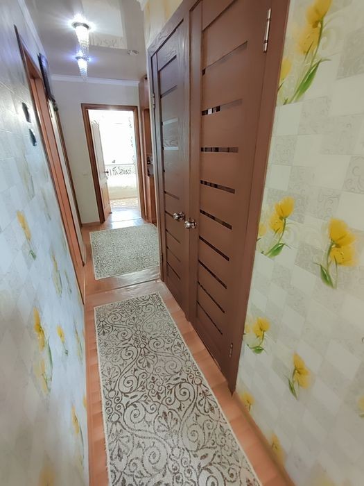 Продается 3-комн квартира в пятиэтажном панельном доме, по адресу мкр 6, дом 11, на 2 этаже. Квартира очень светлая и теплая, комнаты изолированные, большая прихожая. Окна везде пластиковые, балкон остеклен пластиком, на балконе есть встроенные шкафы; линолеум поменян, потолки натяжные. Межкомнатные двери поменяны. Санузел раздельный, сантехника и трубы поменяны, на стенах кафель. Квартира для большой и дружной семьи, можно заехать и жить. Частично с мебелью. Хороший район, рядом две школы, детский сад, остановки, стоянка для авто, магазины, аптеки и многое другое.