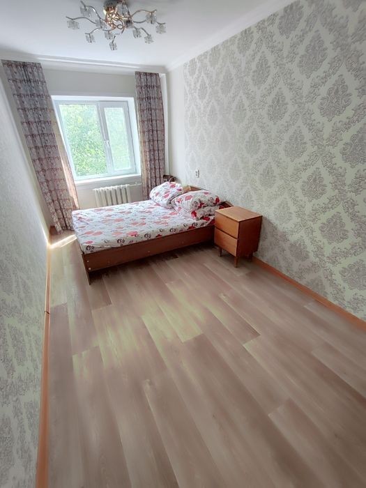 Продается 3-комн квартира в четырехэтажном панельном доме по адресу г. Степногорск, мкр. 1, дом 50, этаж 2. Квартира очень светлая и теплая, с ремонтом. Окна везде пластиковые, установлена входная металлическая дверь. Потолки и стены везде выровнены. В зале и коридоре на полу ламинат, в комнатах и кухне линолеум. Чистые и светлые обои, межкомнатные двери поменяны. Санузел совмещенный по проекту дома, стояки все поменяны на пластиковые. Сантехника заменена, на стенах кафель. Хороший и тихий район, удобное месторасположение, рядом две школы, бассейн, в шаговой доступности акимат, дк Горняк, ТЦ Казахстан, остановки, магазины, аптеки и многое другое.